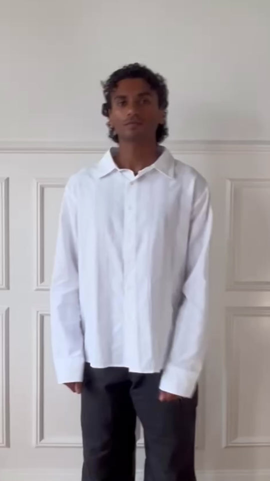 The Luca Shirt is a lightweight shirt crafted from 100% cotton, woven and sewn in Portugal. Crafted with a bold collar, straight hem, back pleats and mitred cuffs for a structured yet relaxed silhouette.